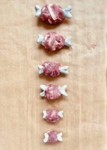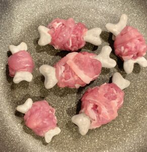 重ねてつけていって、理想のマンガ肉の形に近づけてくださいね。