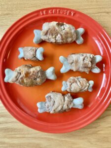 切り落とし肉、薄切り肉などが巻き付けやすいです。