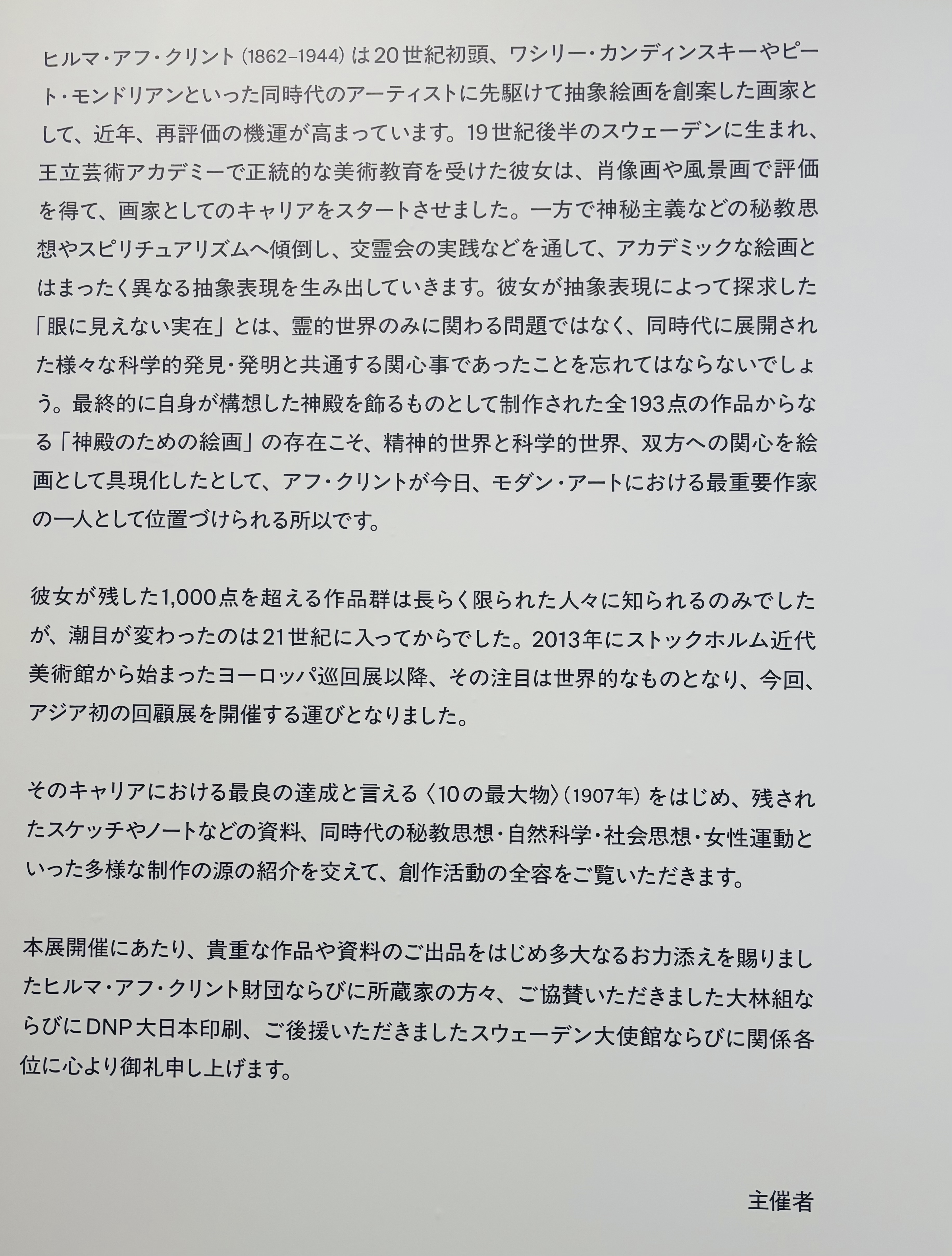 『ヒルマ・アフ・クリント展』は、今年見るべき展覧会の一つだと思います。