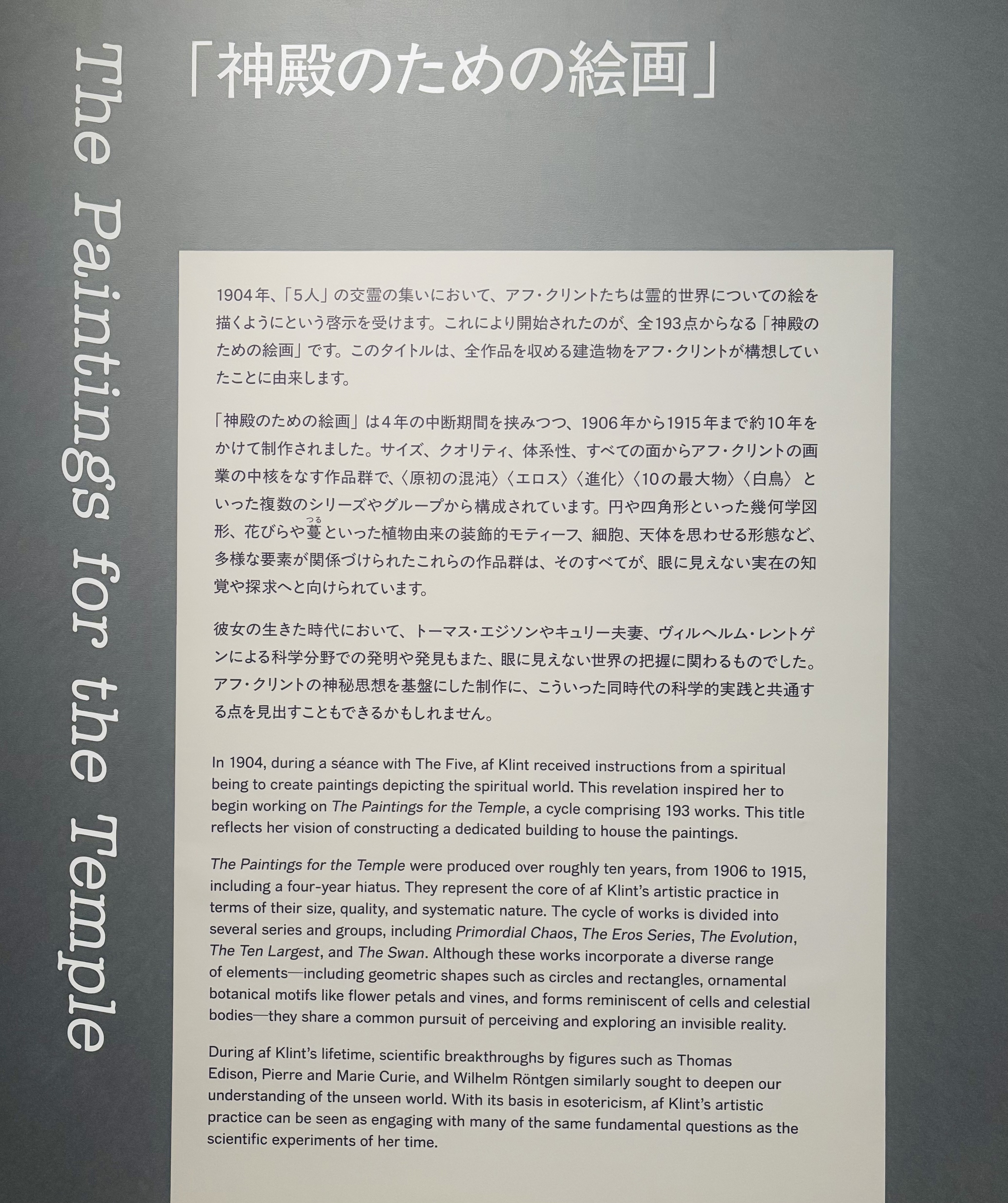 神殿のための絵画とは、ヒルマさんが、全作品を収める建築物を構想していたことに由来する