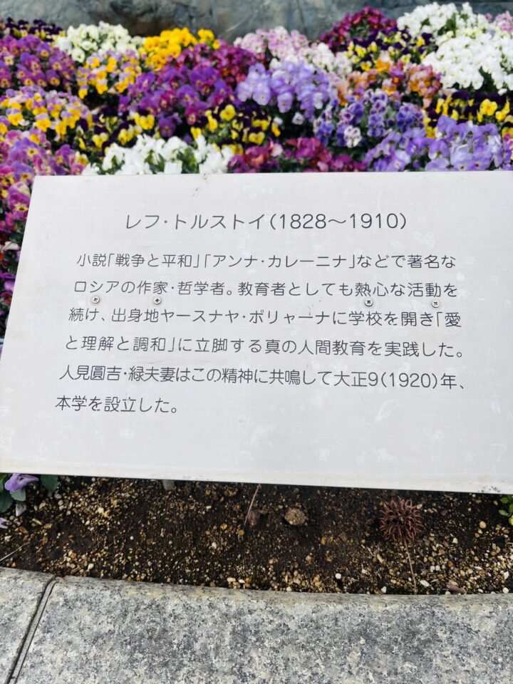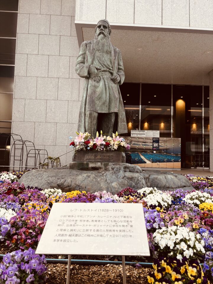 会場前には、ロシアの作家トルストイさん。
